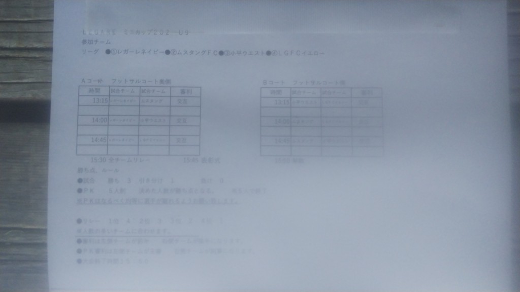 本日はレガーレミニカップ U9オーバーエイジ枠有